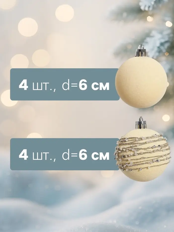 - Диаметр 6 см подходит для классического и современного оформления ёлки.