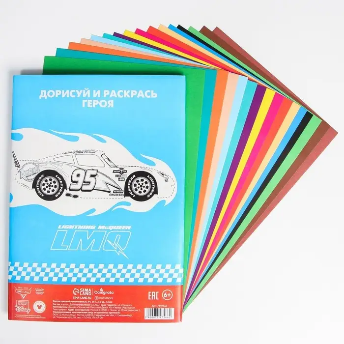 Картон цветной, А4, 16 листов, 16 цветов, немелованный, односторонний, в папке, 200 г/м², Тачки