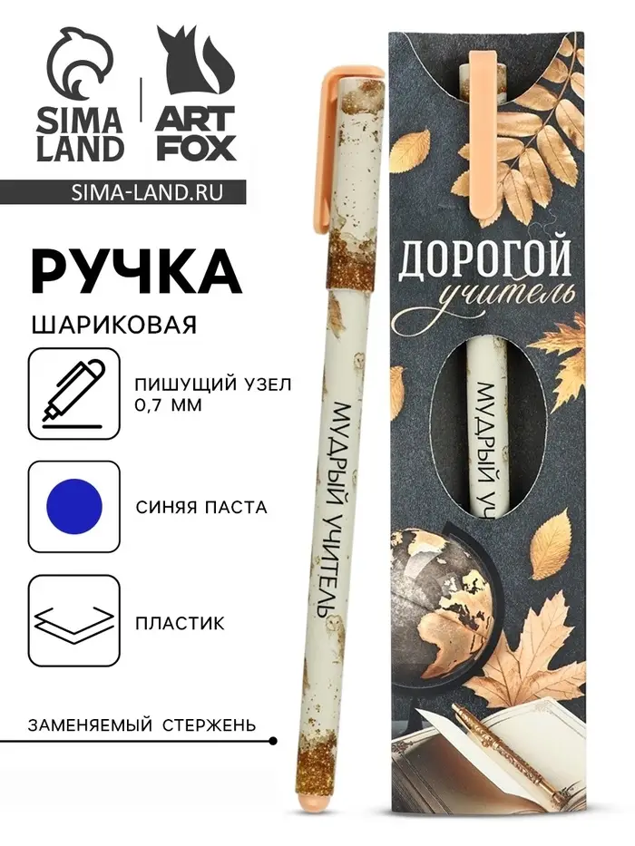 Ручка шариковая, синяя паста, 0.7 мм, пластик, в подарочной упаковке «Дорогой учитель»