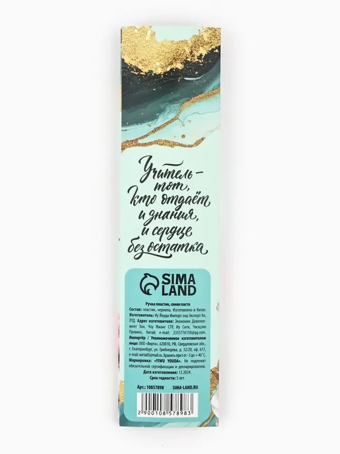 Ручка шариковая, синяя паста, 0.7 мм, пластик, в подарочной упаковке «Любимому учителю»