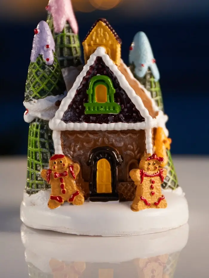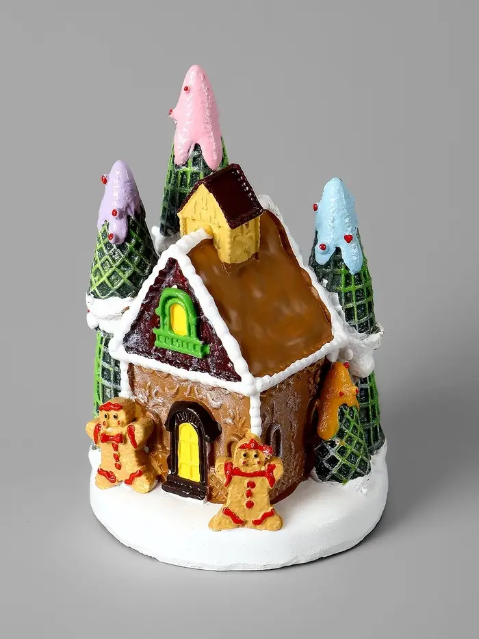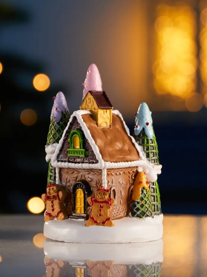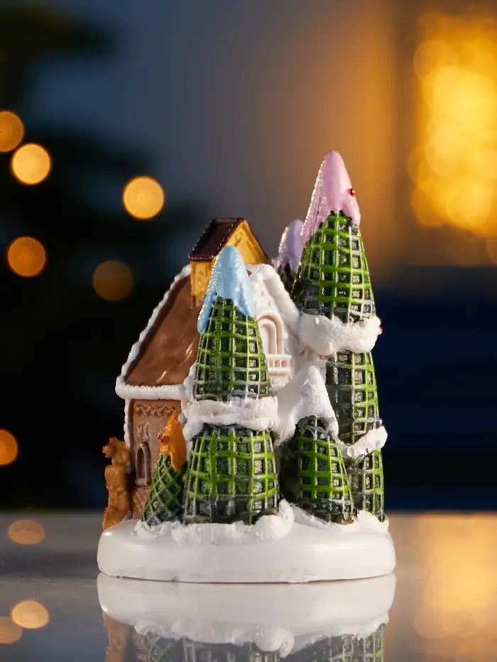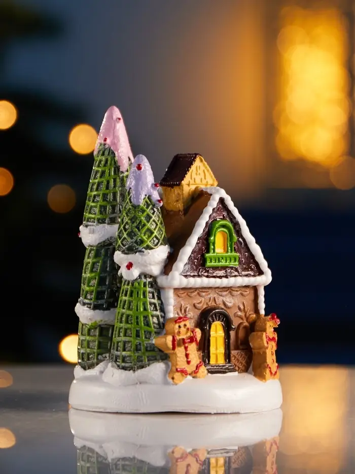 Компактный декоративный домик с тёплым белым свечением создаёт особую атмосферу уюта и праздника в любом интерьере. Его размеры 10 × 7 см позволяют легко разместить фигурку на полке, столе или в новогодней композиции, добавляя мягкий свет и очарование.