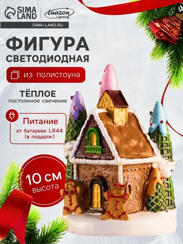 Светодиодная фигура «Дом печеньки», 10×7 см, 4 LED, от батареек, свечение тёплое белое