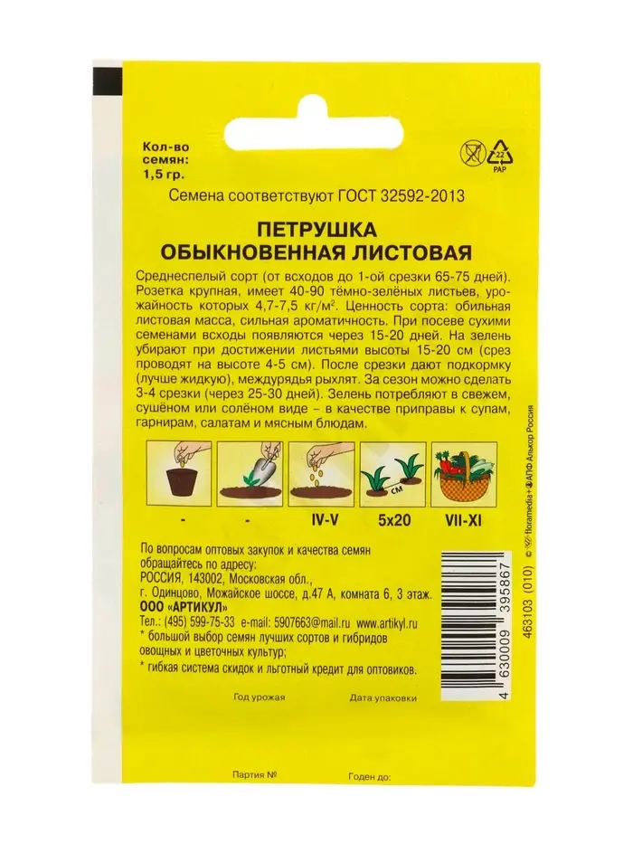 Семена Петрушка "Обыкновенная Листовая" среднеспелая, 1,5 г
