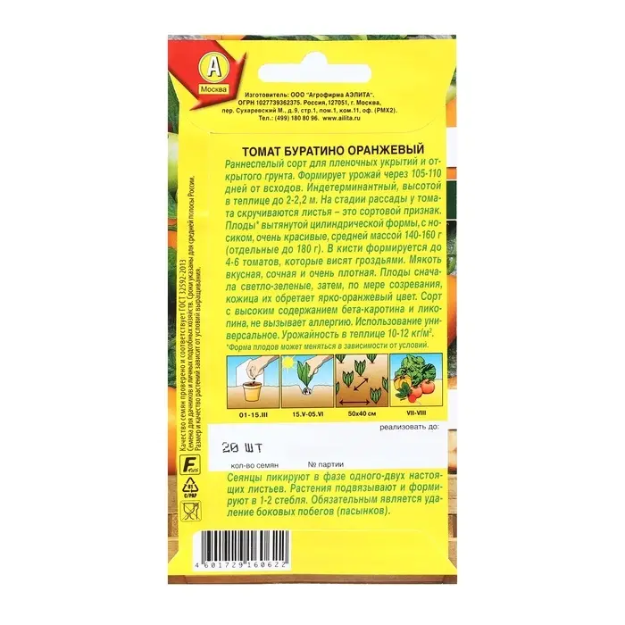 Семена Томат «Буратино», оранжевый, серия «Народный любимец», 20 шт., «АЭЛИТА»