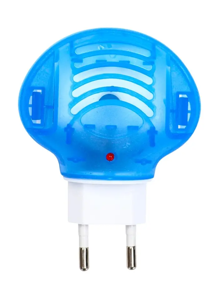 Детский набор для защиты от комаров включает фумигатор и флакон со специальной жидкостью. Создаёт безопасное пространство в комнате, где спит ребёнок.