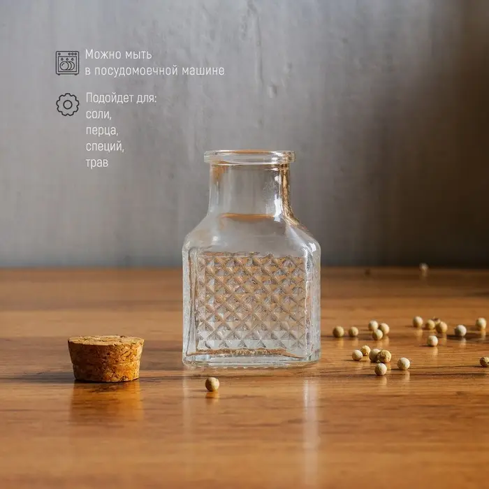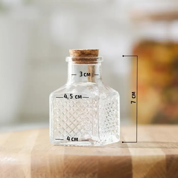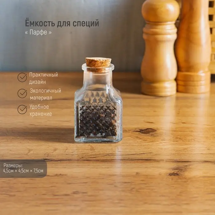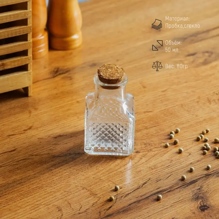 Баночка стеклянная для специй с пробковой крышкой Доляна «Парфе», 50 мл, 4,5×6,8 см