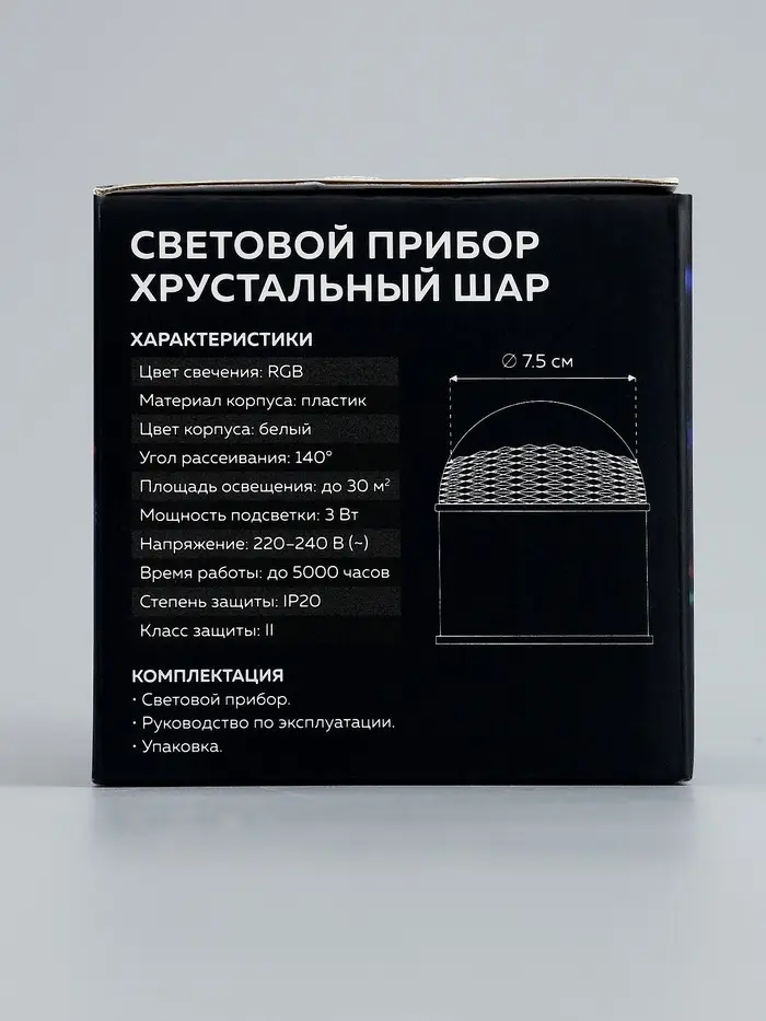 Световой прибор «Хрустальный шар» 7.5 см, свечение RGB, 220 В, чёрный