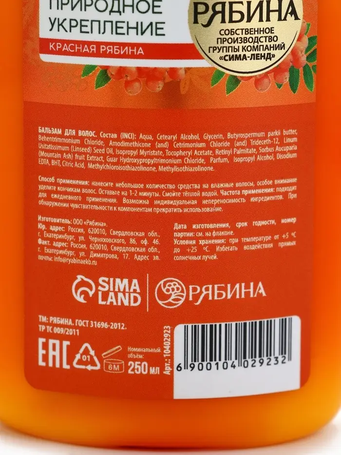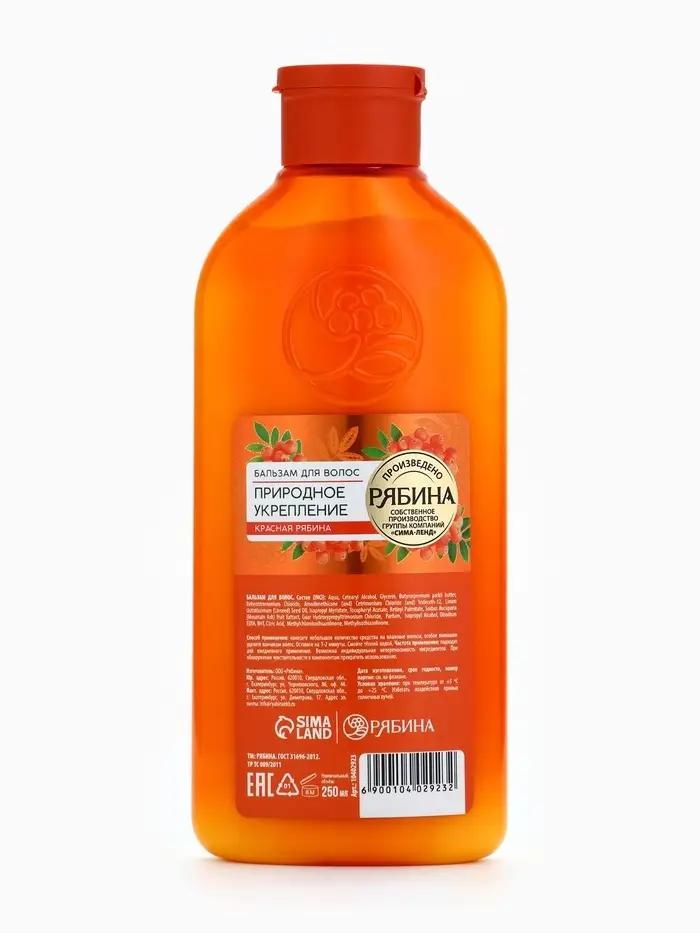 Бальзам для волос с натуральным экстрактом рябины, природное укрепление, 250 мл