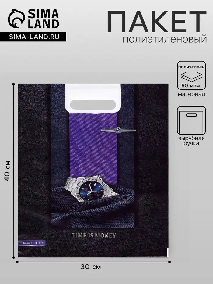 Пакет «Время», полиэтиленовый, с вырубной ручкой, 30×40 см, 60 мкм