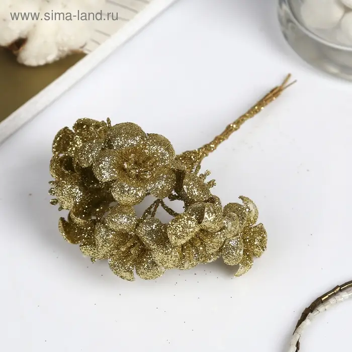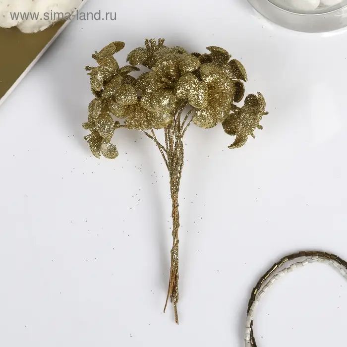 Декор для творчества "Золотые цветы" 10 см (1 набор=1 букету) в букете 12 цветов