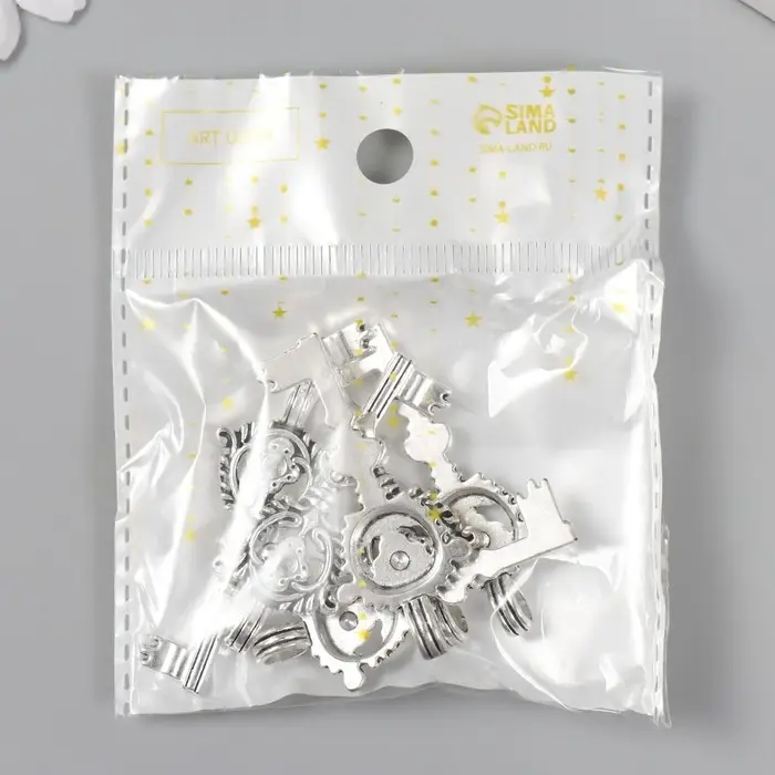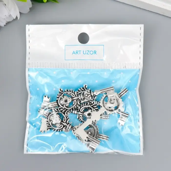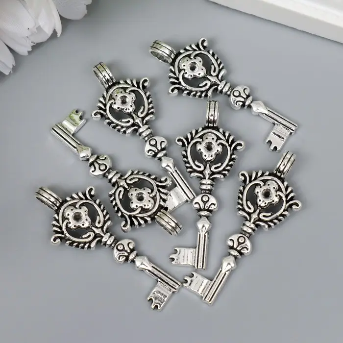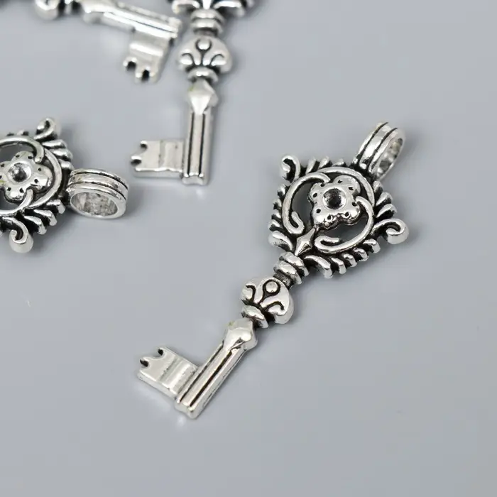 Металлический элемент, декоративная подвеска «Арт Узор. Ключ Венок с цветком», серебро, 4.7×1.9 см