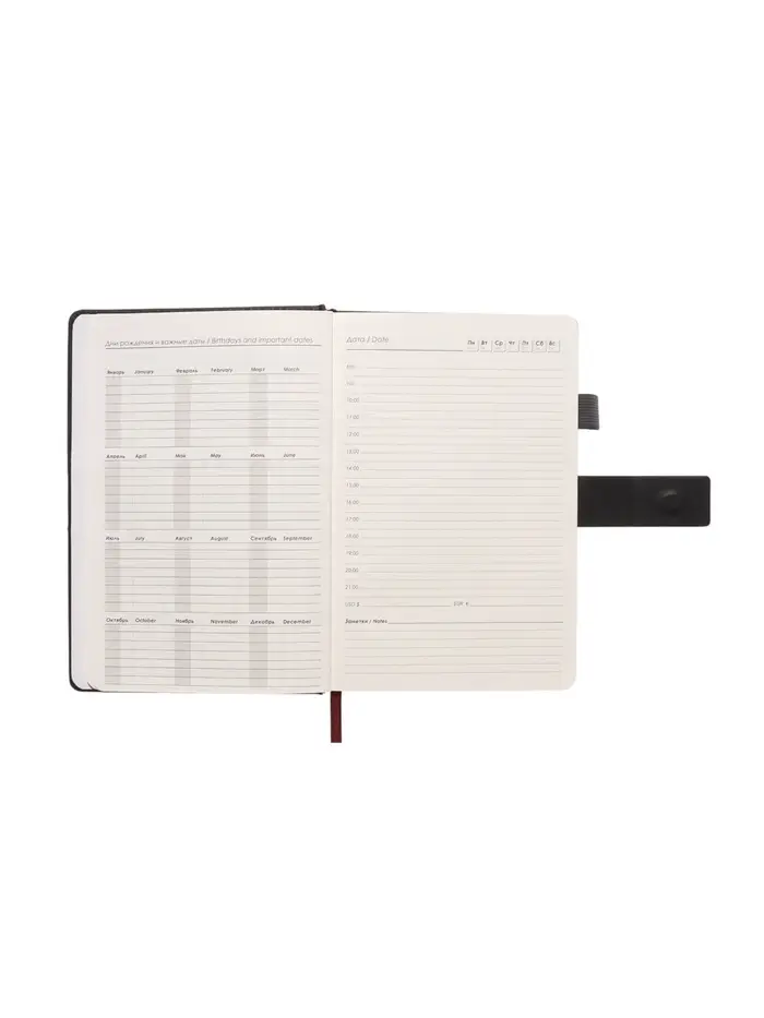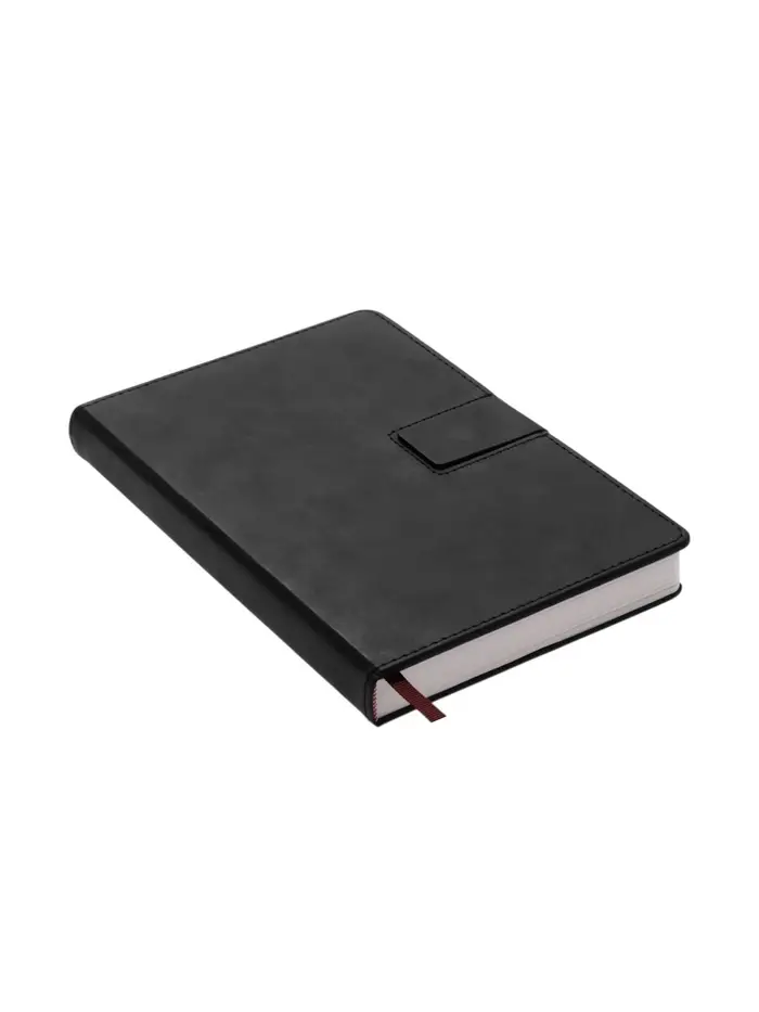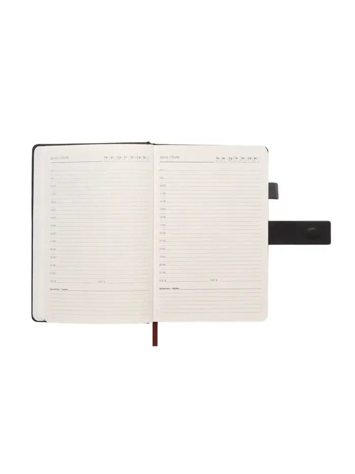 Ежедневник недатированный формат А5, с хлястиком, 128л, линия, пвх, Черный
