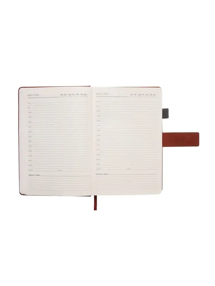 Ежедневник недатированный формат А5, с хлястиком, 128л, линия, пвх, Коричневый