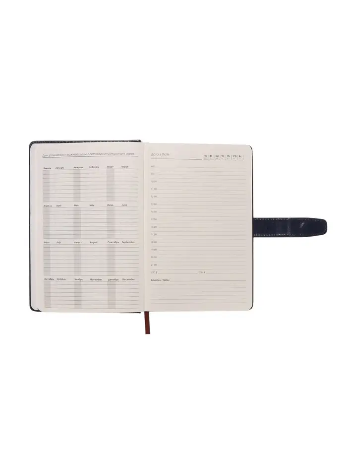 Ежедневник недатированный формат А5, с хлястиком, 128л, линия, пвх, Синий