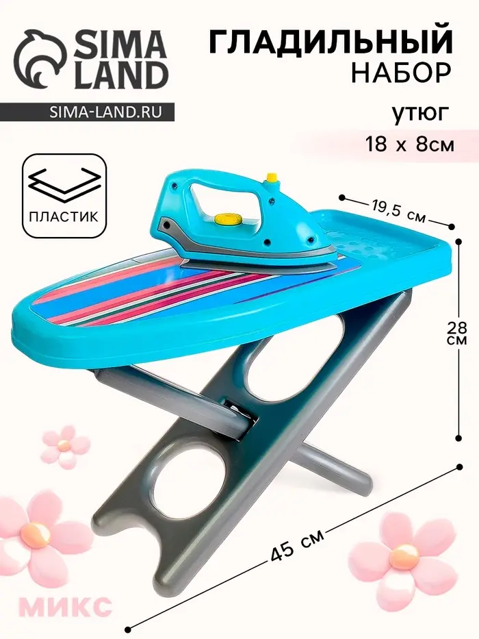 - Набор включает гладильную доску и утюг, выполненные из высококачественных материалов.