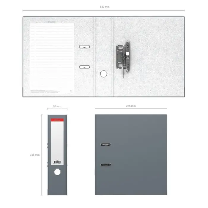 Папка-регистратор ErichKrause, Standard, А4, 70 мм, бумвинил, с этикеткой на корешке, нижний металлический кант, серая