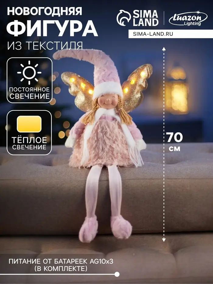 Текстильная кукла высотой 70 см в нежном розовом исполнении не просто украшение — это источник мягкого, тёплого света, который создаёт атмосферу уюта и спокойствия в любом помещении. Шесть светодиодов обеспечивают равномерное и постоянное свечение, подчеркивая изящные детали и текстуру ткани, что придаёт фигуре живой и привлекательный вид.