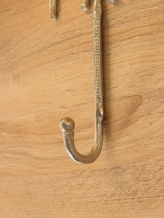- Удобство и надежность: Прочный алюминиевый крючок легко выдерживает вес верхней одежды, сумки или зонта. Он компактно размещается на стене или двери, экономя пространство в прихожей.