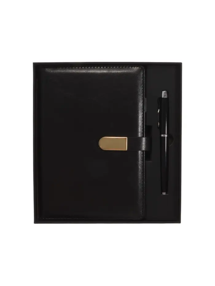Ежедневник недатированный формат А5, 80л, линия, с ручкой, подар коробка, Черный