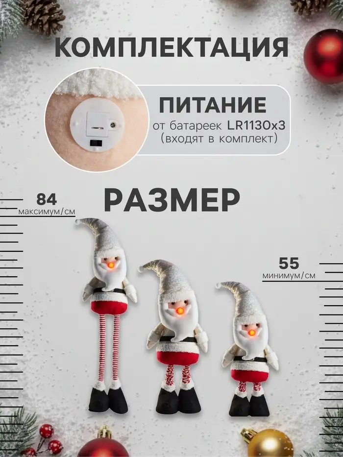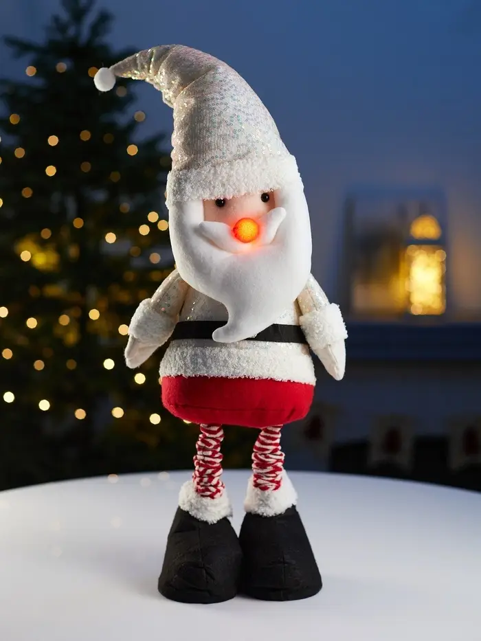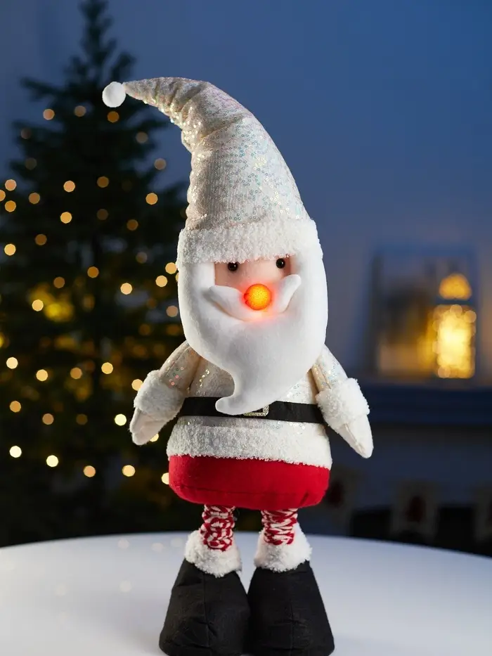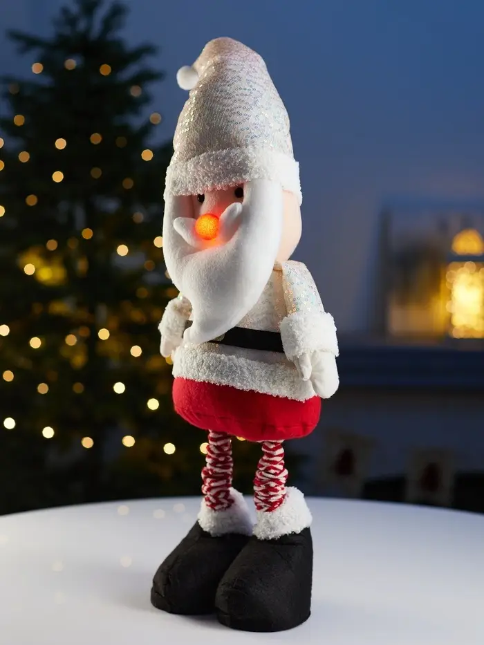 Фигура в форме Деда Мороза с телескопическими ножками высотой от 55 до 84 см станет стильным и функциональным украшением праздничного интерьера. Благодаря регулируемой высоте изделие легко адаптируется к разным пространствам, создавая выразительный акцент и подчёркивая атмосферу уюта и волшебства.
