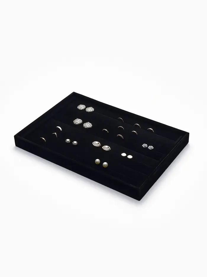 - Качественный материал – флок: мягкая поверхность предотвращает царапины и обеспечивает надежную фиксацию украшений. Черный цвет отлично сочетается с различными стилями интерьера.