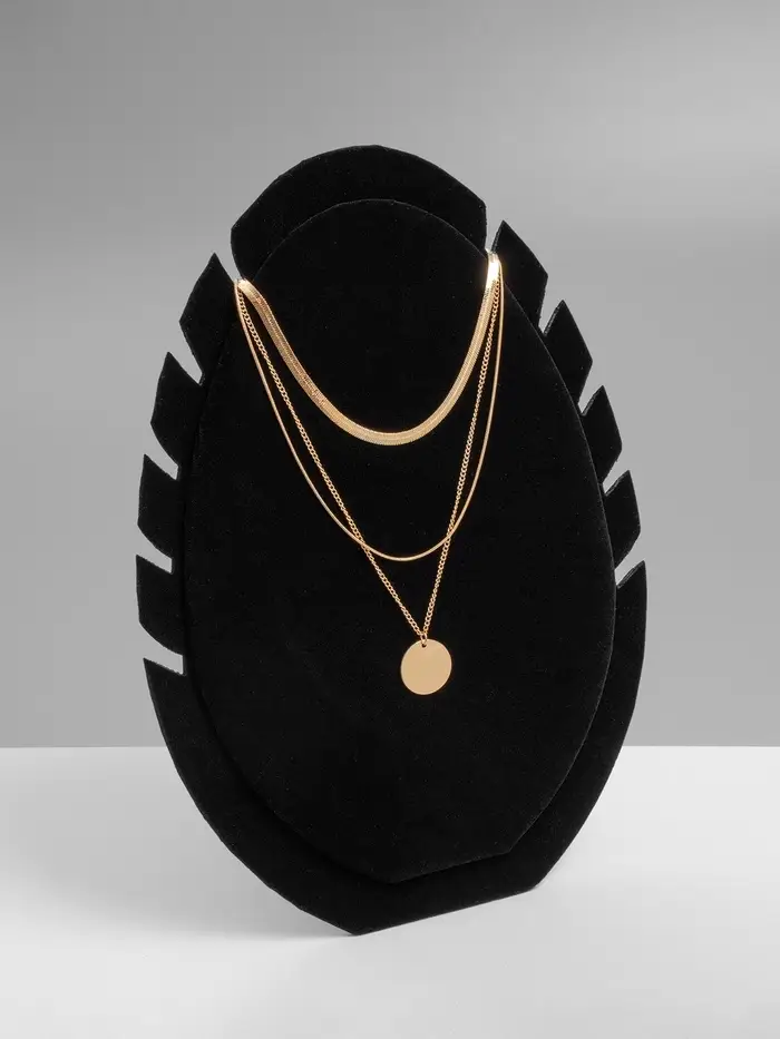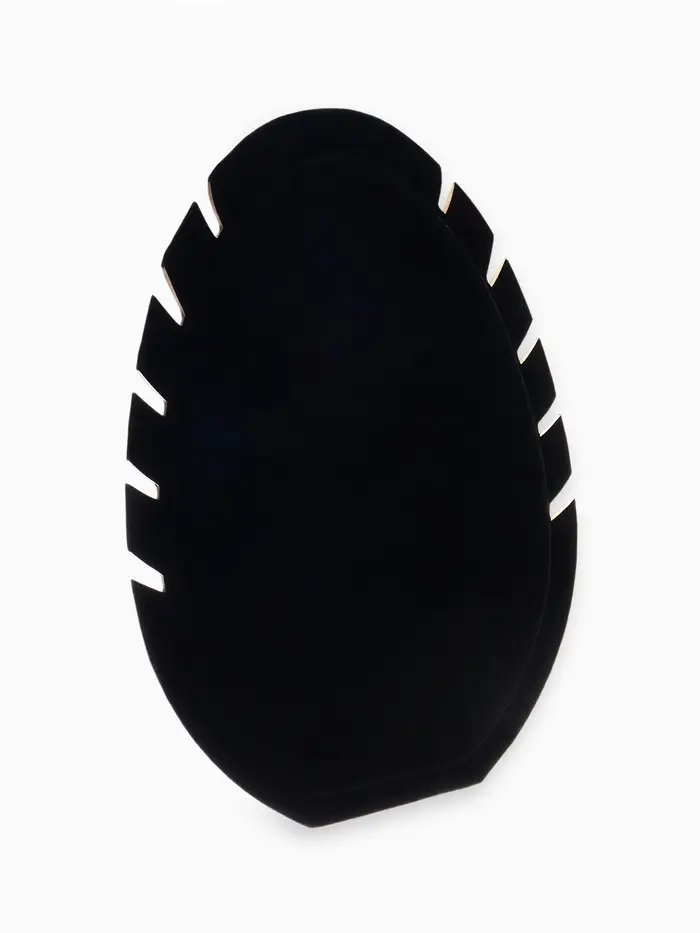 Элегантная демонстрационная подставка «QF. Овал» в глубоком чёрном цвете — это сочетание стиля и функциональности для безупречной презентации вашей коллекции украшений. Лаконичная форма и продуманная конструкция позволяют эффектно разместить до пяти изделий одновременно, создавая акцент на их блеске и деталях.