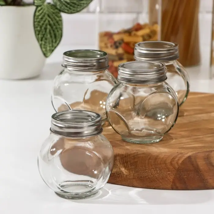 Набор банок стеклянных для сыпучих продуктов «Классика», 200 мл, 4 шт