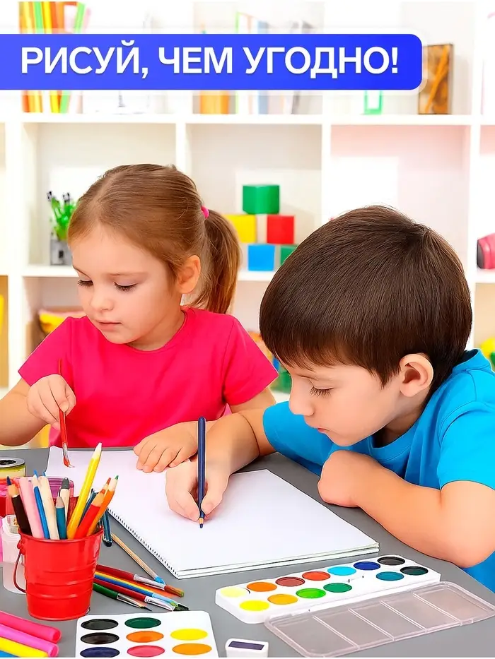 - Подходит для карандаша, фломастеров и акварели.
