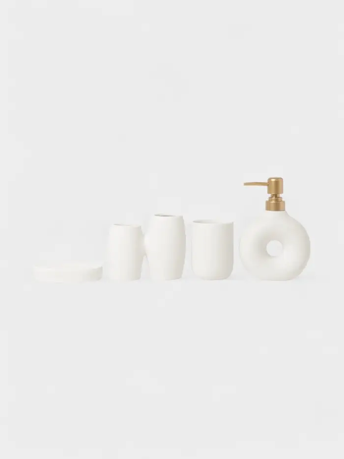 Аксессуары для ванной SAVANNA Monro, 4 предмета, мыльница, дозатор для мыла 450 мл, стакан, баночка, белые
