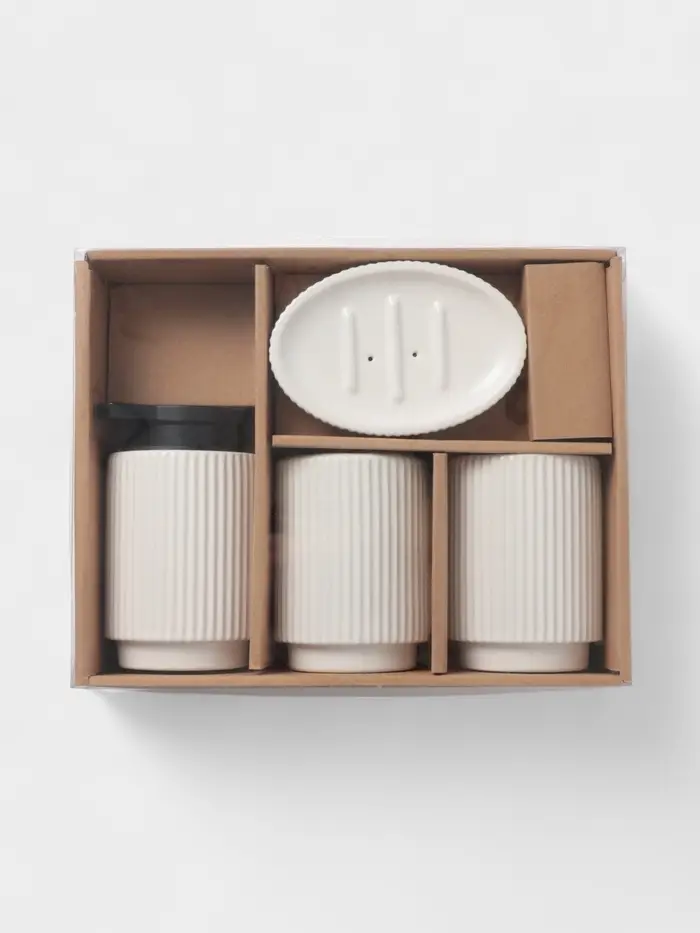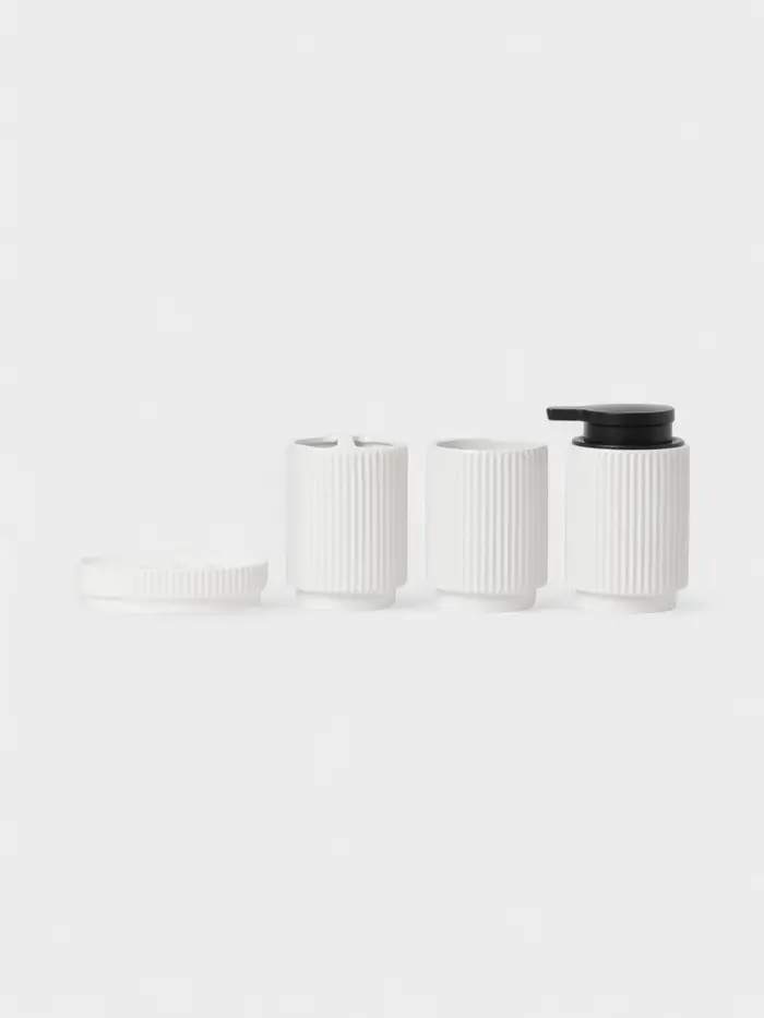 Аксессуары для ванной SAVANNA Monro, 4 предмета, мыльница, дозатор для мыла 450 мл, стакан, баночка, белые
