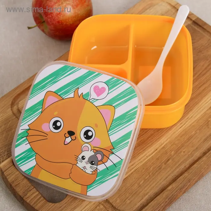 Ланч - бокс квадратный с секциями и ложкой «Кот», 400 мл