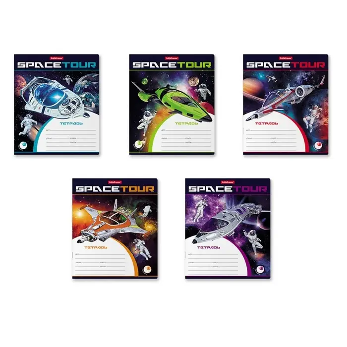 Тетрадь 12 листов в линейку ErichKrause Space Tour, обложка мелованный картон, блок офсет, белизна 100%, МИКС