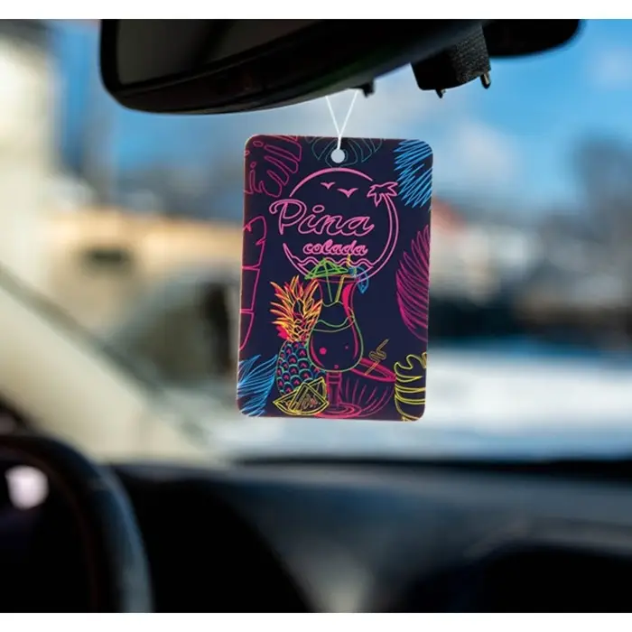 Подвесной ароматизатор для автомобиля и дома. Имеет лёгкий вес и цепляется за подвес на лобовое стекло или кладётся в любую нишу. Специальный картон пропитан парфюмерной композицией и источает приятный аромат, который охватит окружающее пространство и будет успокаивать и одновременно помогать оставаться бдительным. А яркий дизайн ароматизатора послужит хорошим украшением для салона.
