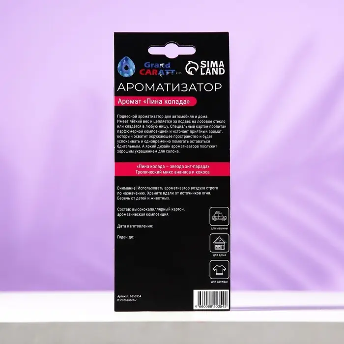 Ароматизатор подвесной Grand Caratt Пина Колада, картонный