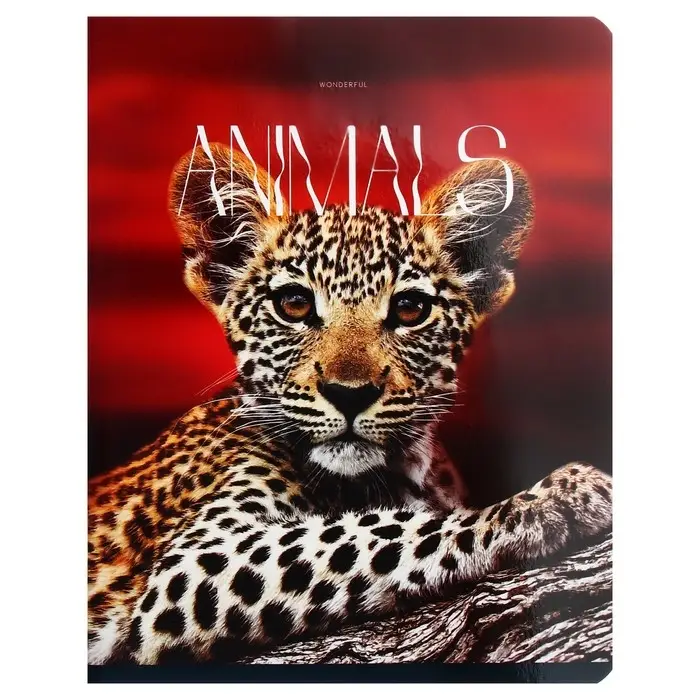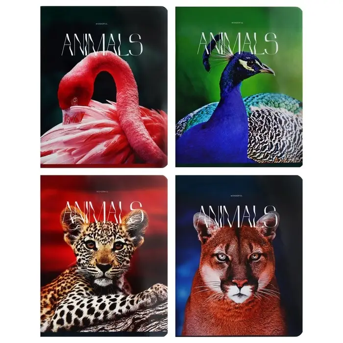 Тетрадь 96 листов в клетку на скрепке "Животные", обложка мелованный картон, глянцевая ламинация, МИКС