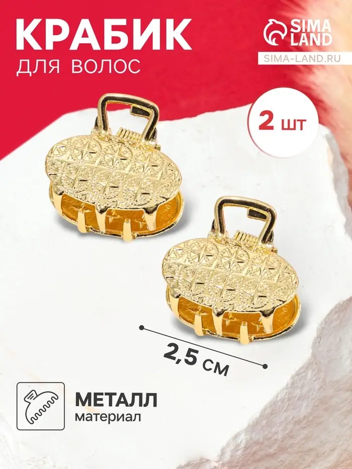 Крабики для волос QF «Либерти», набор 2 шт., геометрия овал, 2.5 см, золотистый