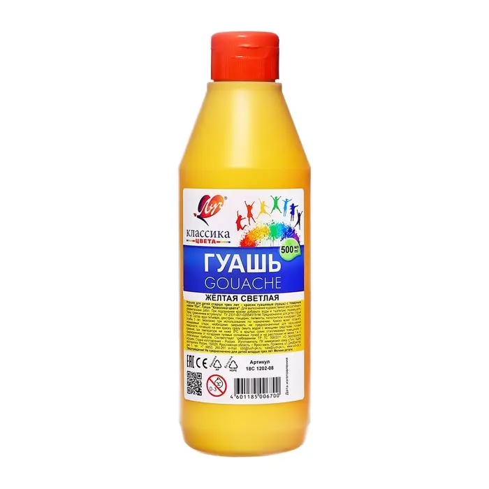 Гуашь «Луч», 500 мл, жёлтая светлая поможет вашему ребёнку создавать красивые яркие картинки, выдумывать невероятные сюжеты и воплощать их в реальность, развивая цветовое восприятие, зрительную память, воображение, мелкую моторику пальцев, ассоциативное, аналитическое и творческое мышление.