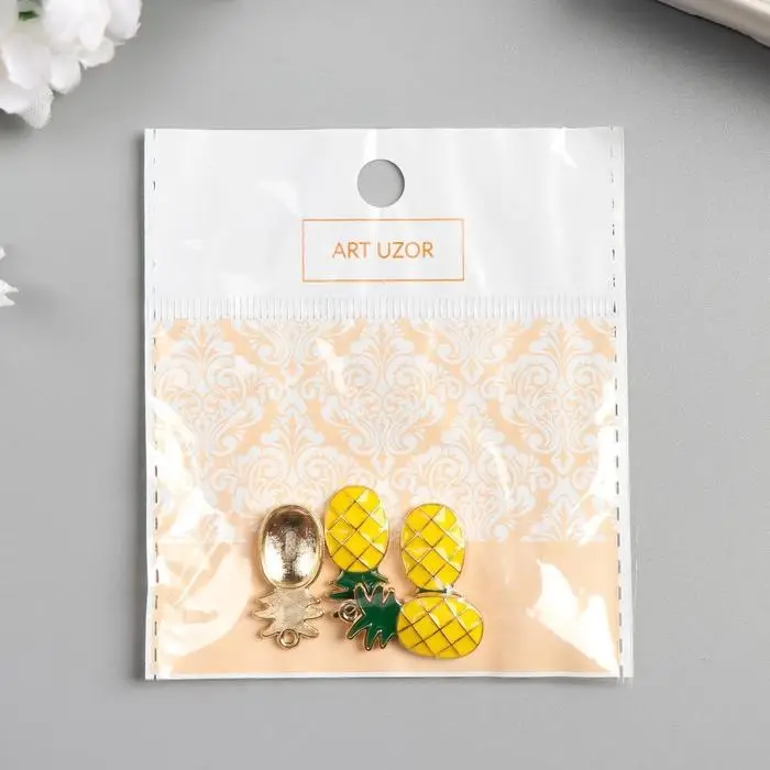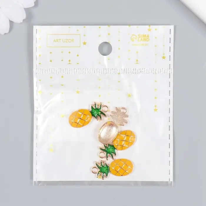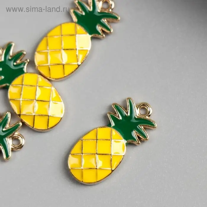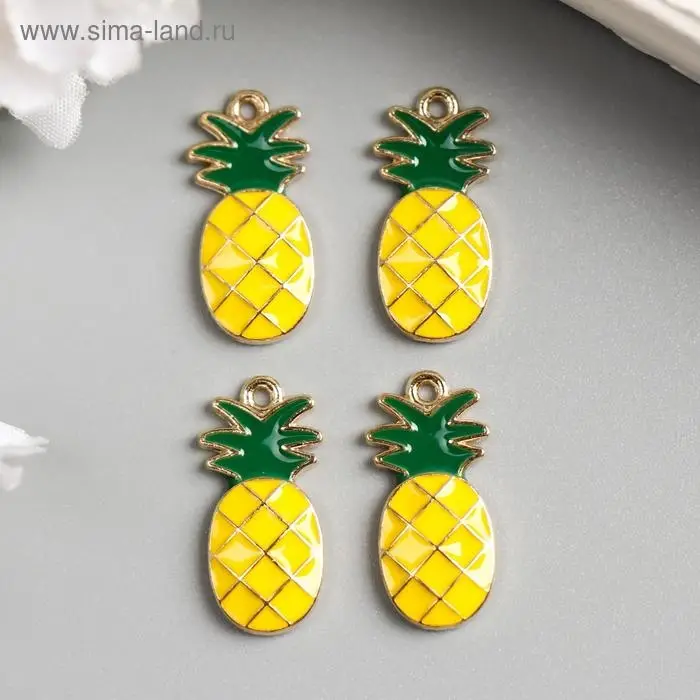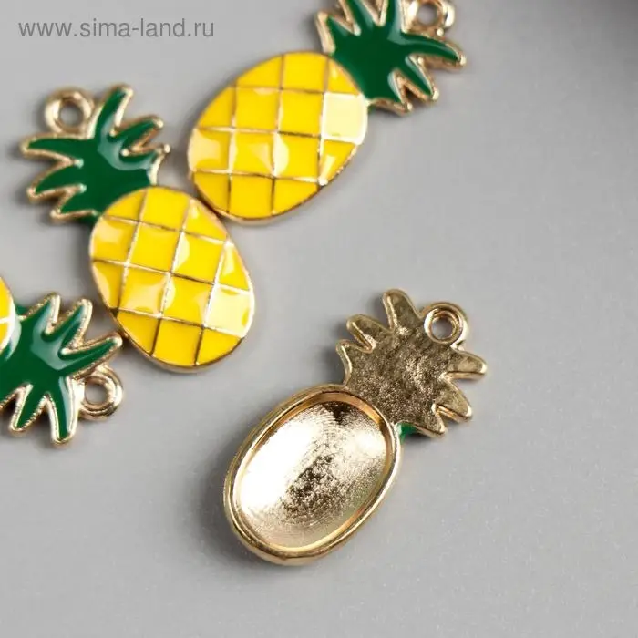 Декор для творчества металл, эмаль «Ананас», золото, 1.4×1.2 см