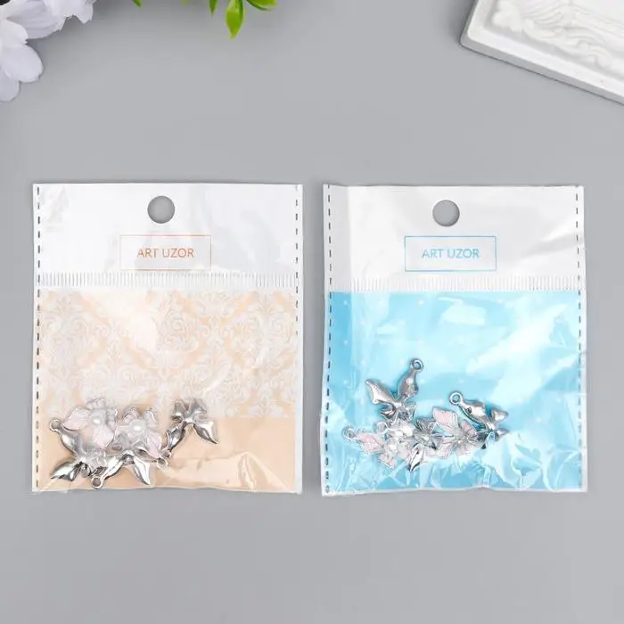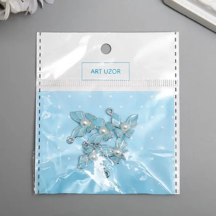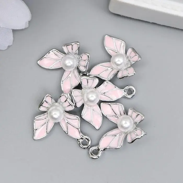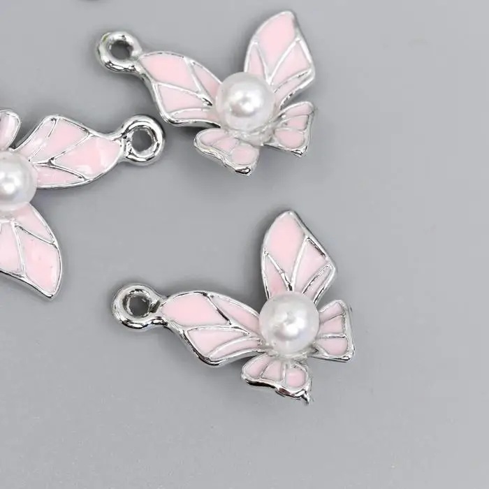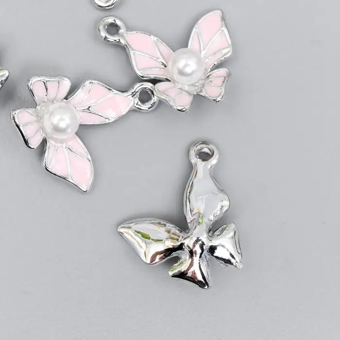 Декор для творчества металл, эмаль "Бабочка с жемчужиной" серебро МИКС 1,5х1,5 см