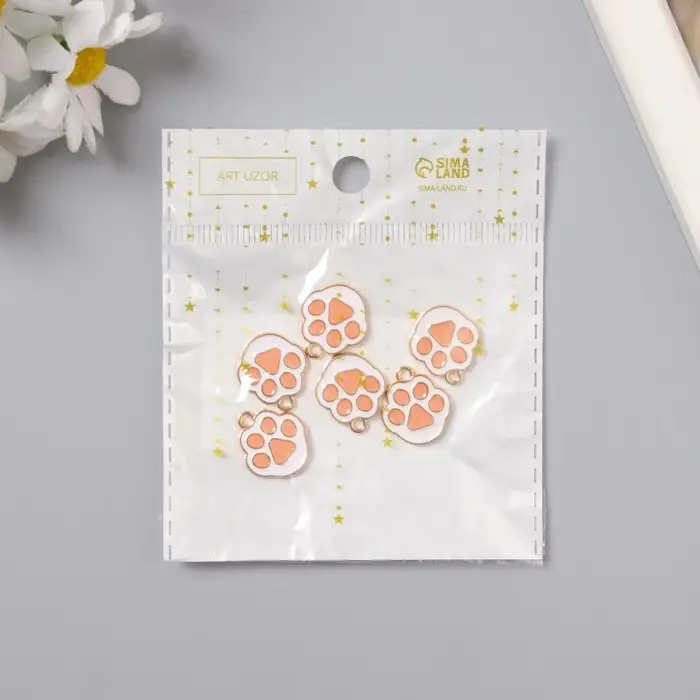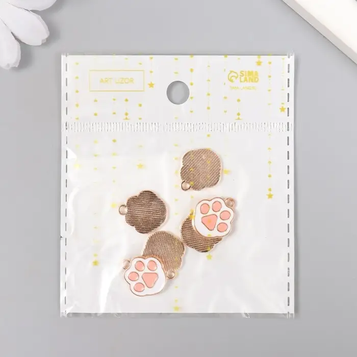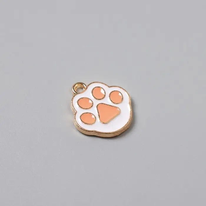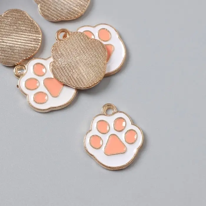 Металлический элемент, декоративная подвеска «Арт Узор. Кошачья лапка», эмаль, бело-розовый, 1.7×1.5 см
