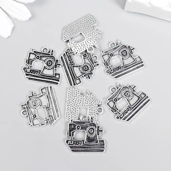 Металлический элемент, декоративная подвеска «Арт Узор. Швейная машинка», серебро, 2×2 см