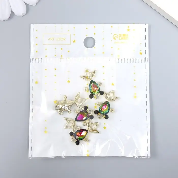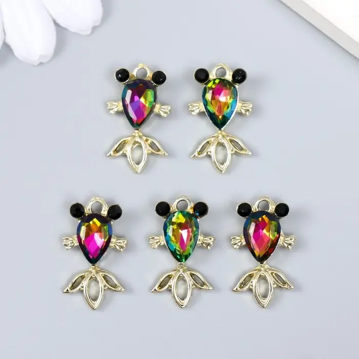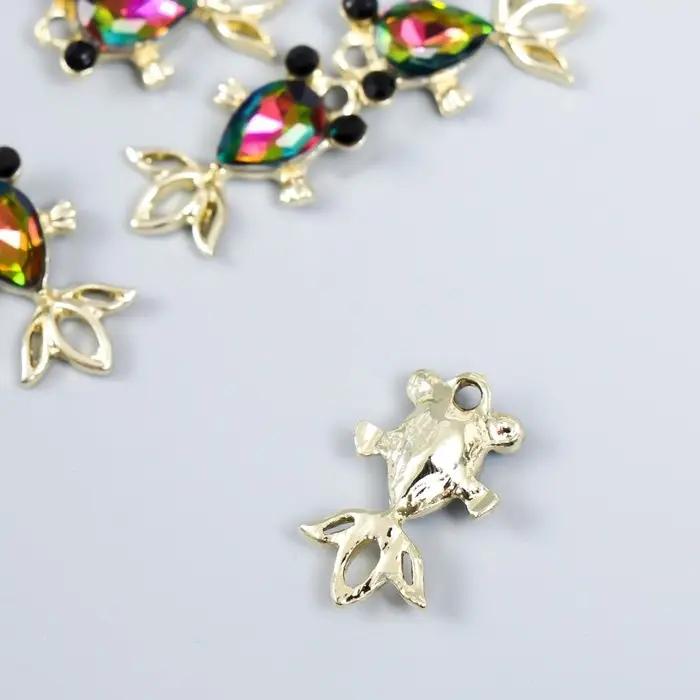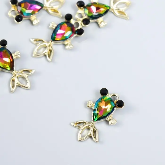 Декор для творчества металл, стразы "Рыбка голография" золото 2,1х1,2х0,2 см