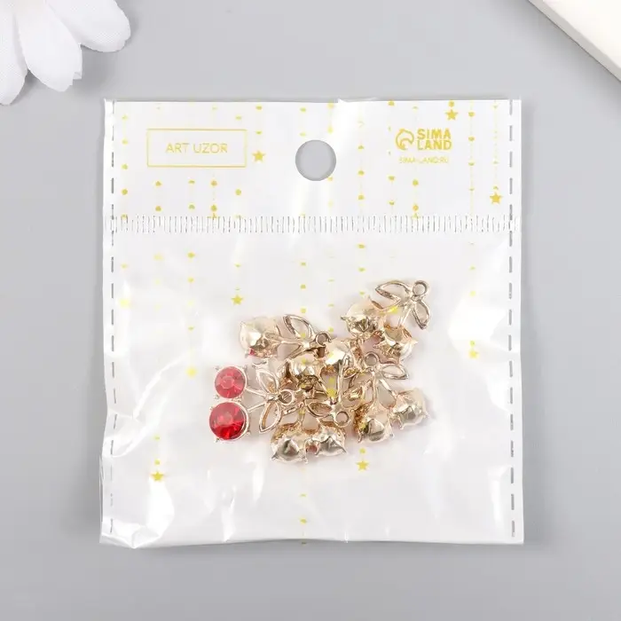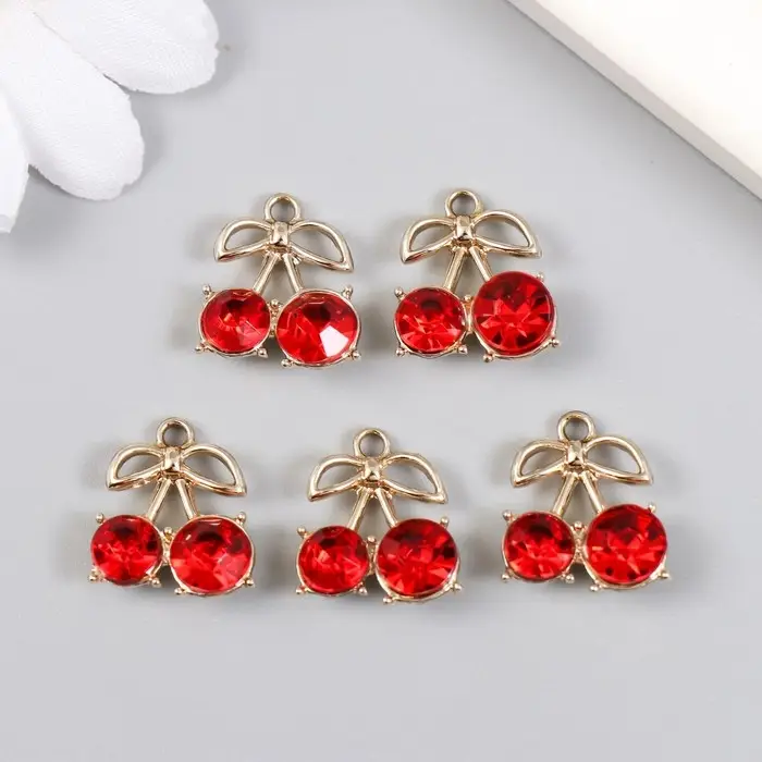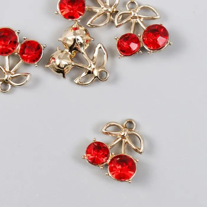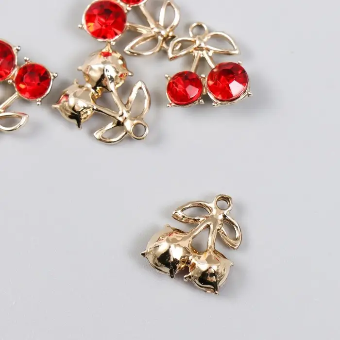 Декор для творчества металл, стразы "Спелая вишенка" 1,5х1,7 см