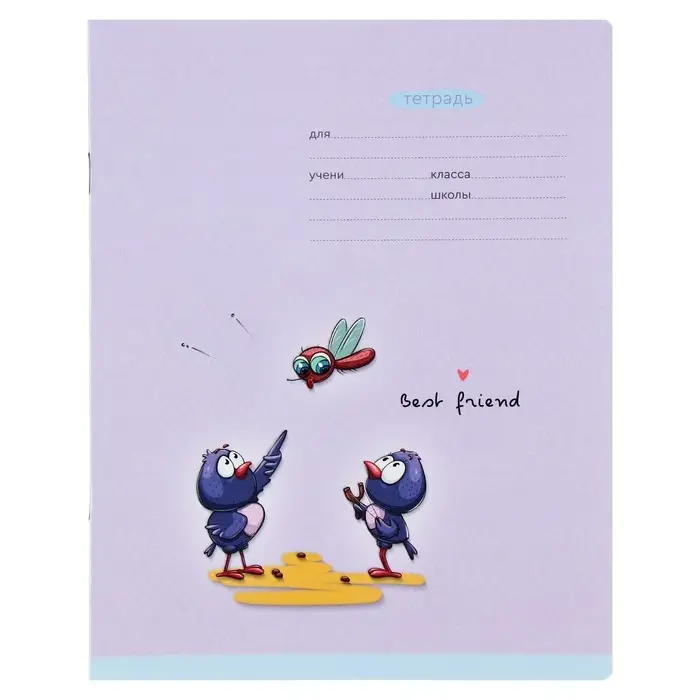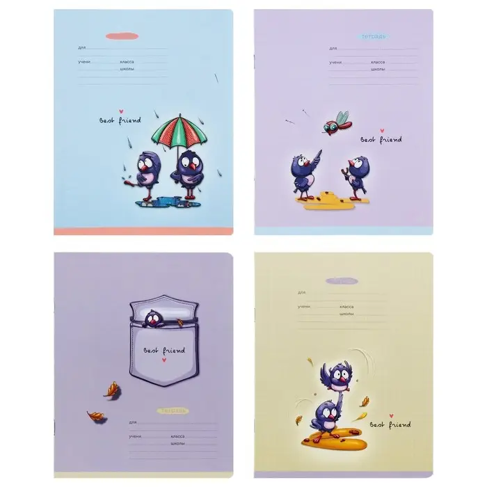 Тетрадь 12 листов в клетку на скрепке "Эксклюзив. Путешествие птенцов", обложка мелованный картон, выборочный УФ-лак, МИКС