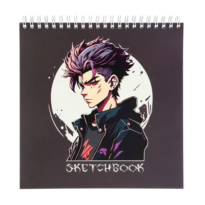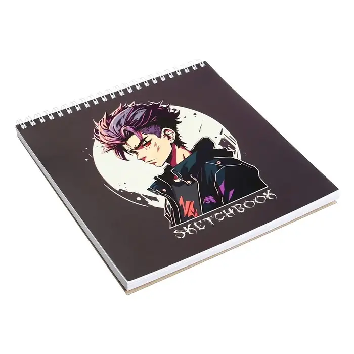 Скетчбук 190 х 190 мм, 60 листов на гребне "Аниме мальчик", обложка мелованный картон, твёрдая подложка, блок 100 г/м²