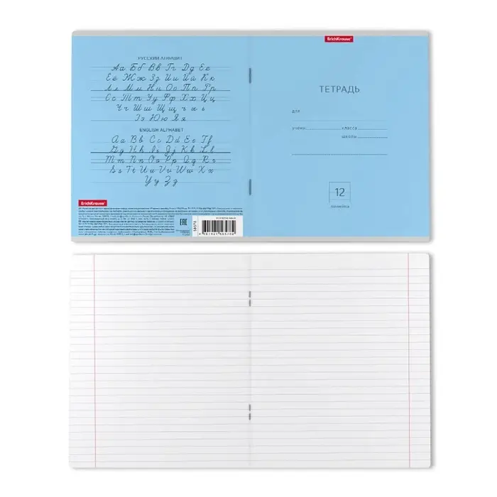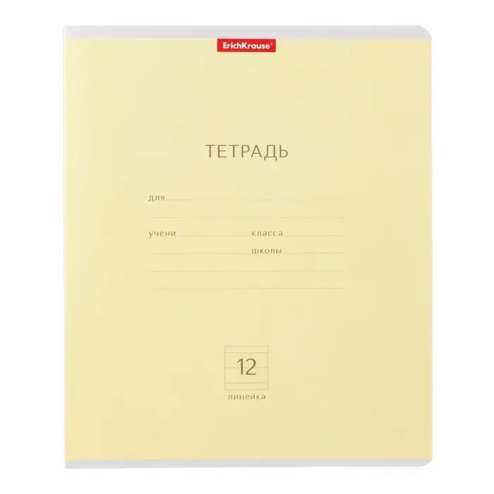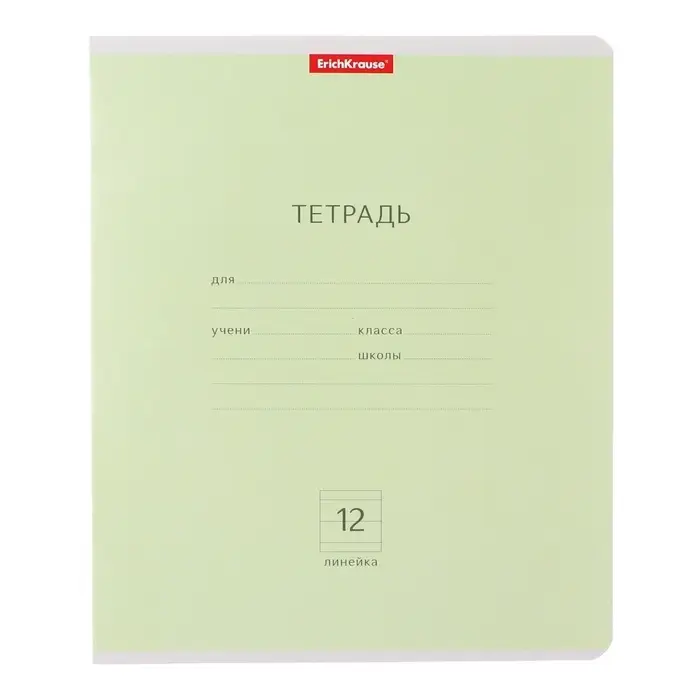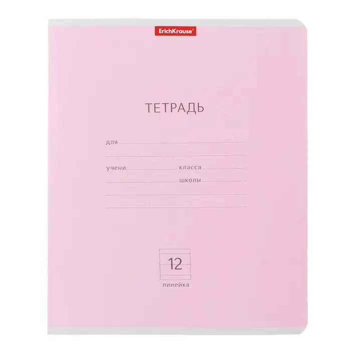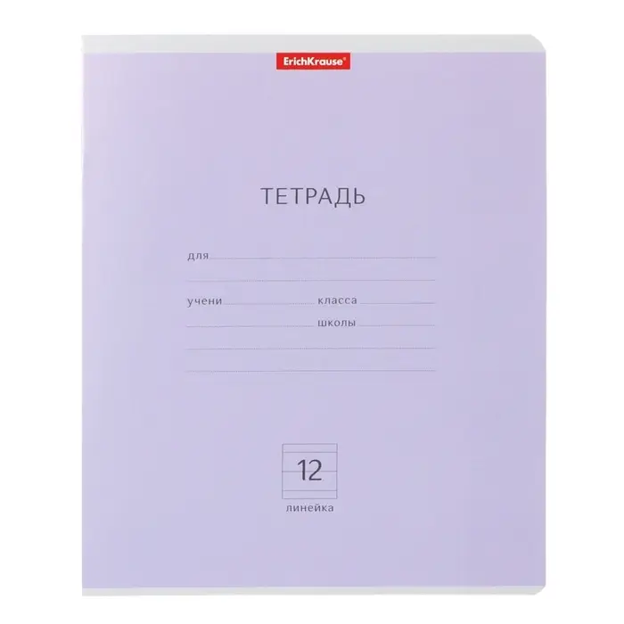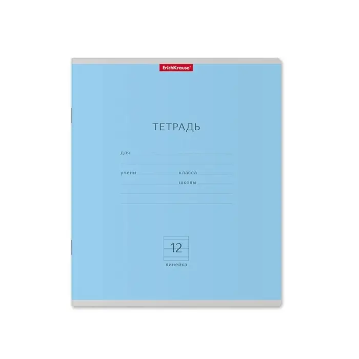 Тетрадь школьная ученическая формата А5+ (170х203 мм). Обложка из высококачественного мелованного картона плотностью 180 г/м2. В блоке 12 листов в линейку с полями. Бумага офсетная плотностью 60 г/м2. Цвет линовки - синий. Скругленные уголки обложки и блока. Тип скрепления - скоба. Тетради разных цветов упакованы в термоусадочную пленку по 10 штук.