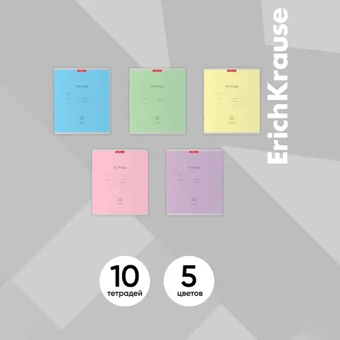 Тетрадь 12 листов в линейку ErichKrause «Классика», обложка мелованный картон, блок офсет, белизна 100%, МИКС