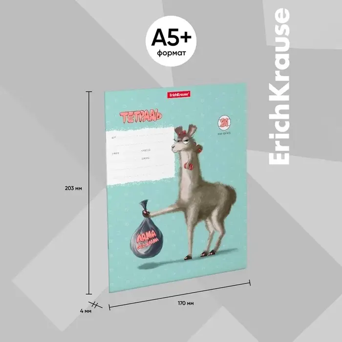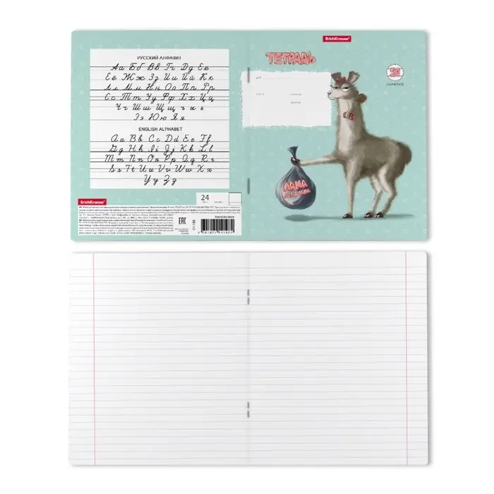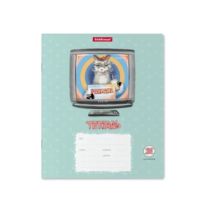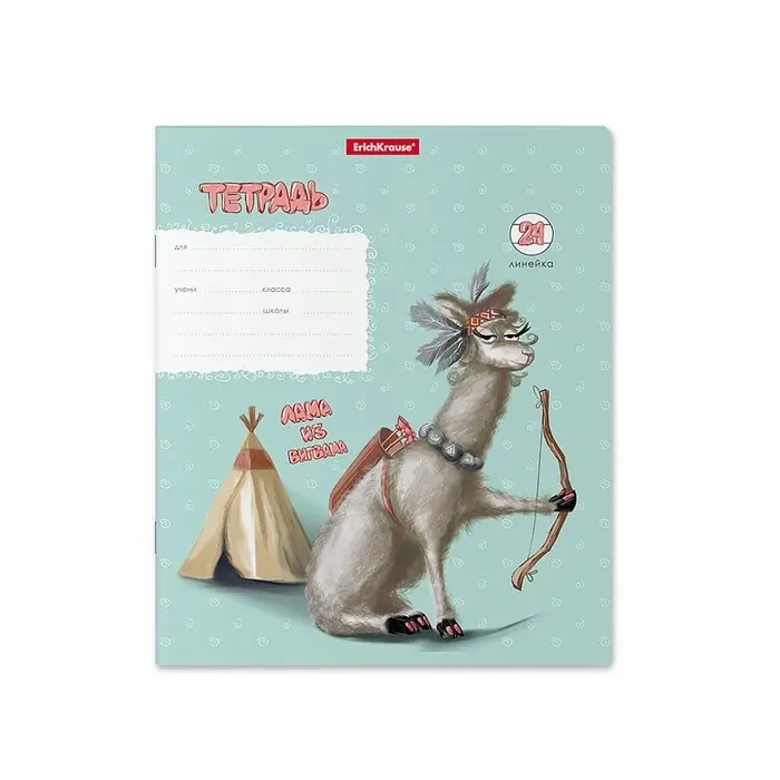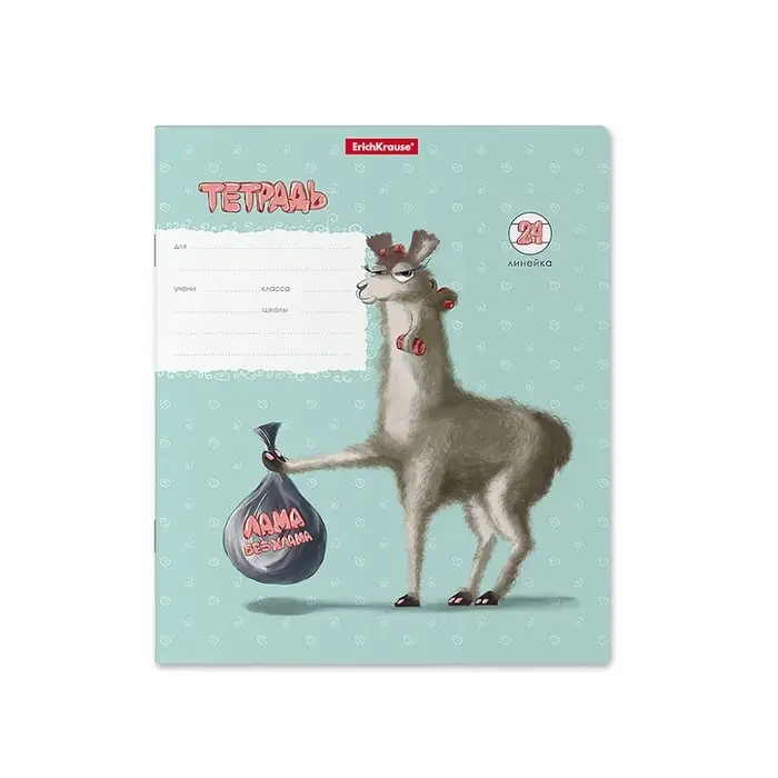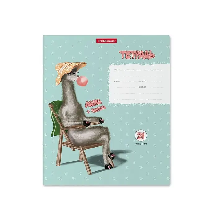 Тетрадь 24 листов в линейку, ErichKrause "Лама", обложка мелованный картон, блок офсет 100% белизна, МИКС