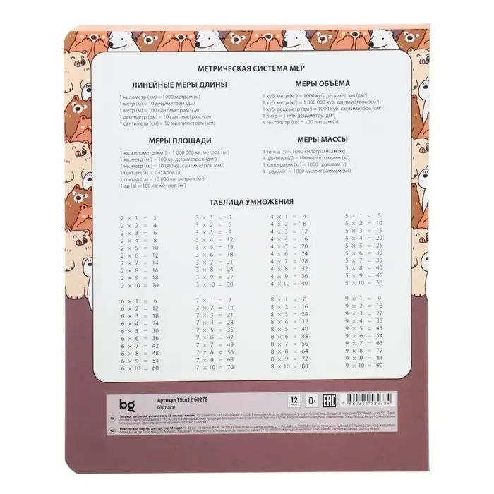 Тетрадь 12 листов в клетку Grimace, обложка мелованный картон, МИКС