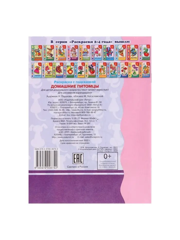 Раскраска для малышей «Домашние питомцы», 2 - 4 года